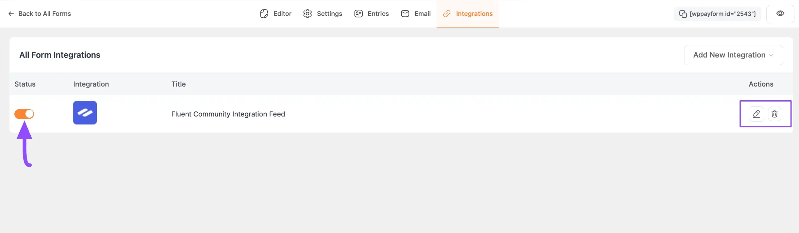 First, go to All Forms from the Paymattic Navbar, select the Desired Form where you want to integrate FluentCRM and click the Pencil/Editor Icon.