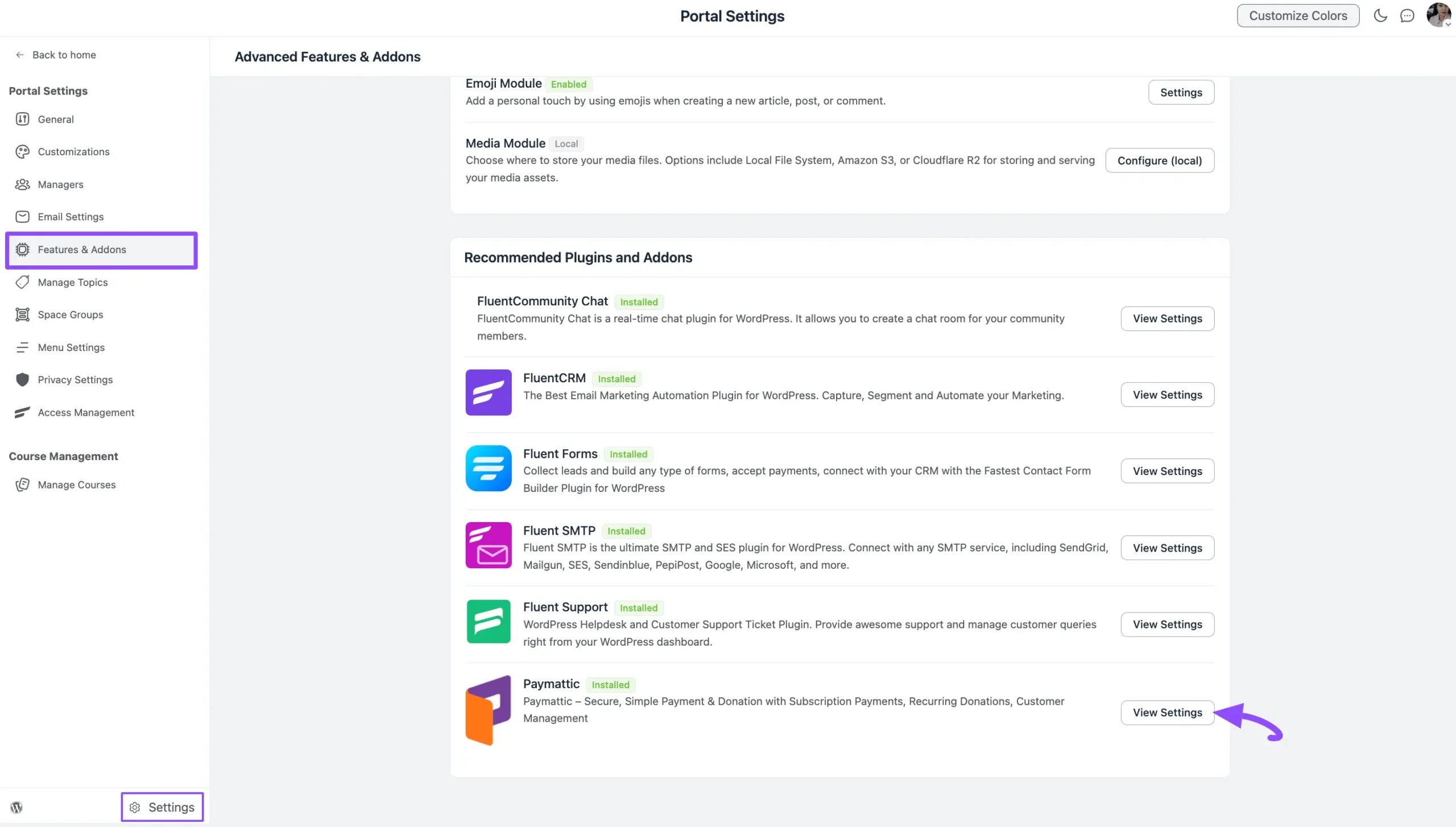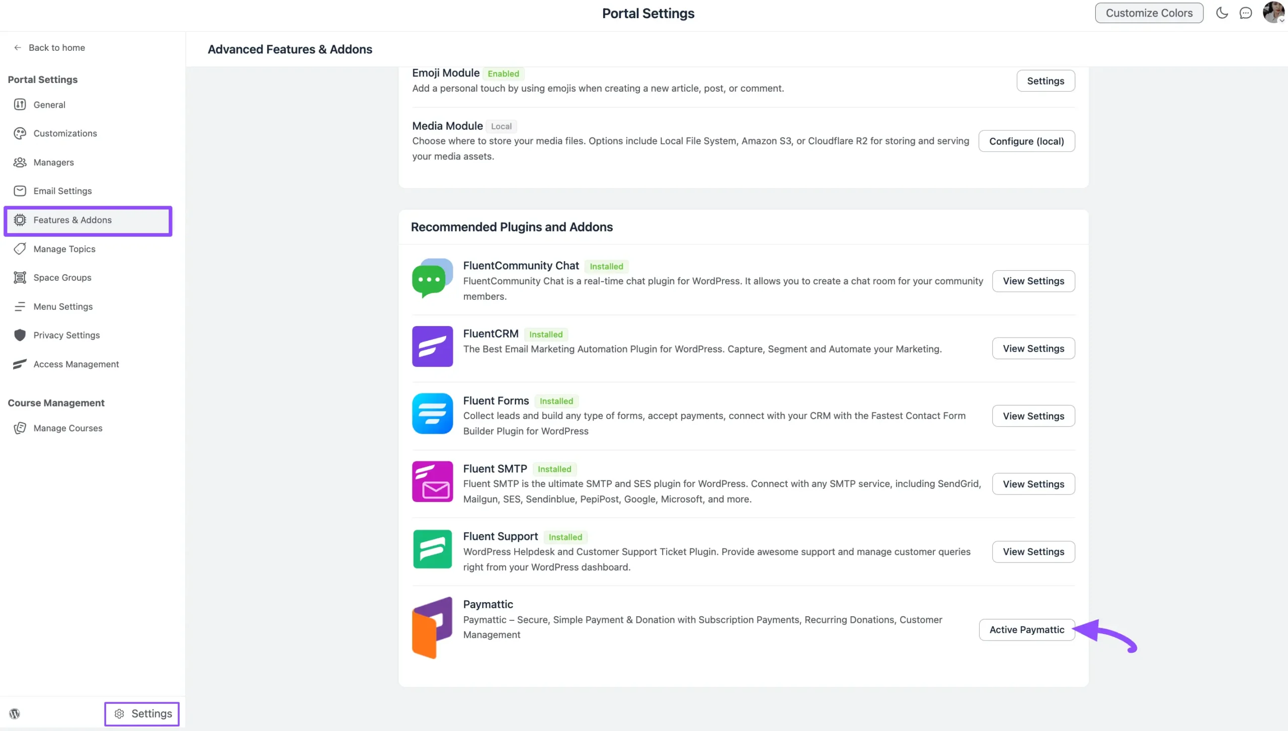 By default, the FluentCommunity module will be enabled in your Paymattic.