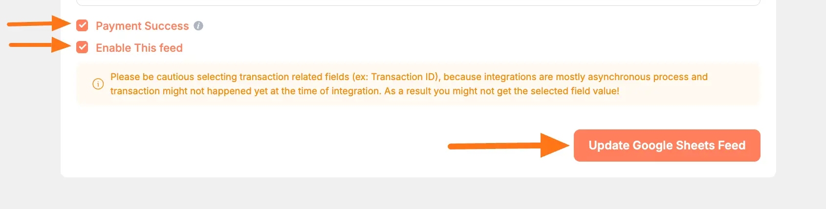 Payment Success and Enable This Feed